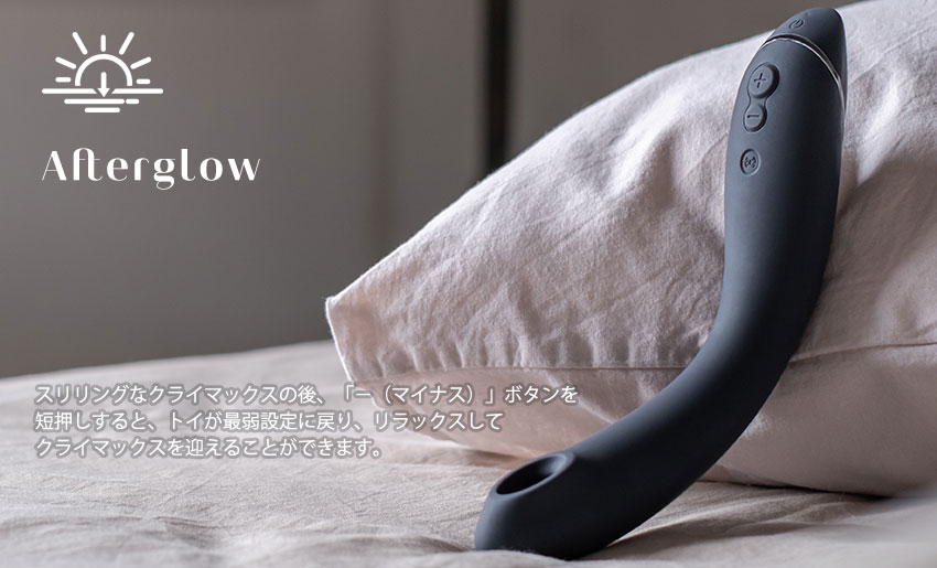 クライマックスの後に「-(マイナス)」ボタンを短押しするだけで、トイが最弱設定に戻ります。 これにより、リラックスしながら余韻を楽しむことができます。